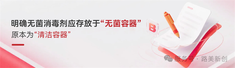 明确无菌消毒剂应存放于“无菌容器”,而非原先的“清洁容器”。