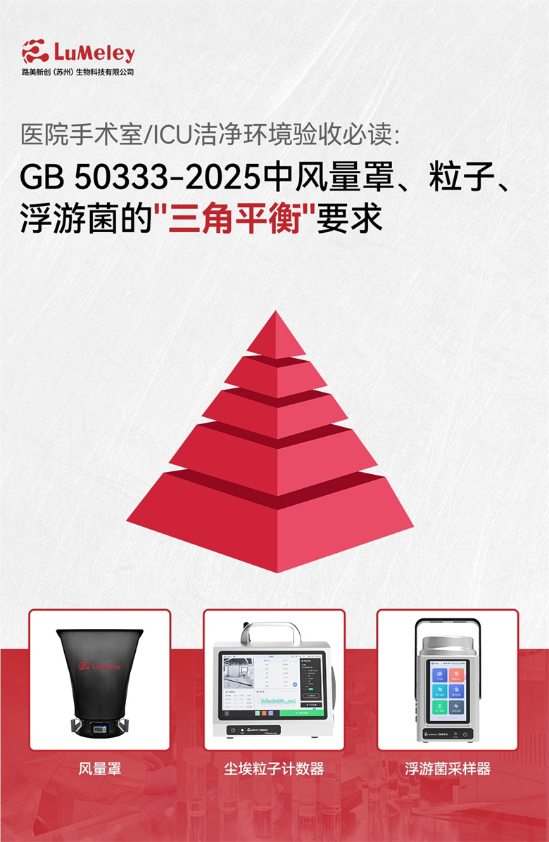 最新版的《医院洁净手术部建筑技术规范》(GB 50333-2025)为这座“堡垒”的构建提供了权威标准。其中,风量(换气次数)、悬浮粒子、浮游菌这三项核心指标,并非孤立存在,而是构成了一个相互验证、相互制约的 “三角平衡”关系。理解这一逻辑,是成功通过验收的关键。