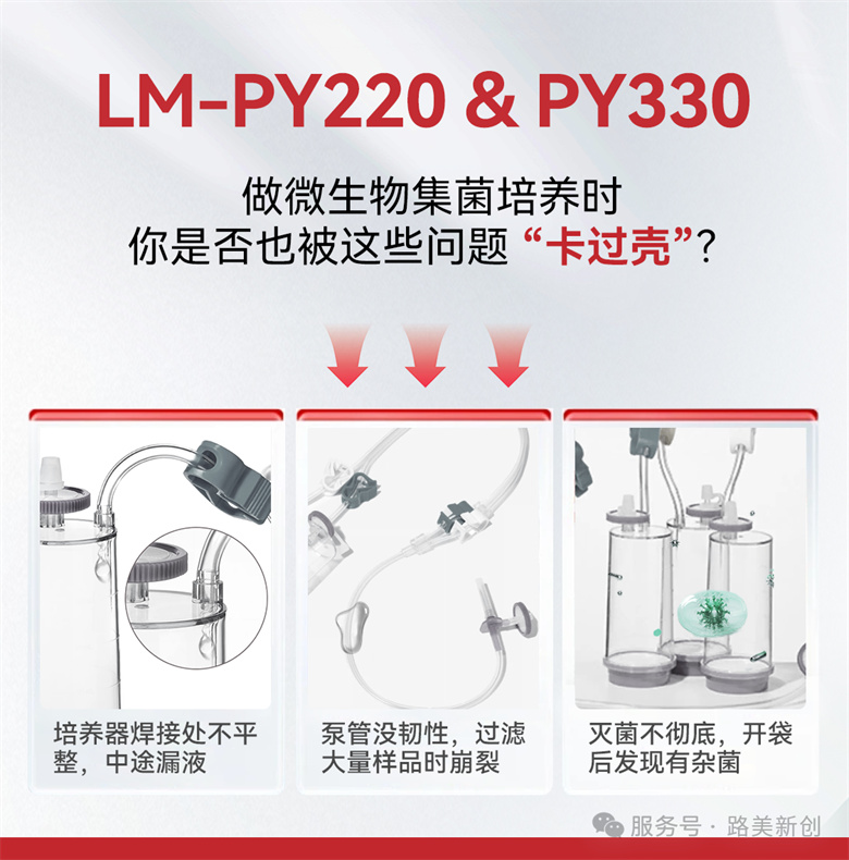 做实验,“稳” 比什么都重要。路美新创 LM-PY220/330 一次性全封闭集菌培养器,从焊接、泵管到灭菌,每一处设计都瞄准 “解决实际问题”,让你不用再为漏液、过滤慢、无菌差焦虑,把更多精力放在实验本身。