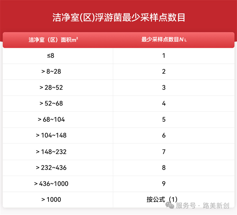 表1洁净室(区)浮游菌最少采样点数目
