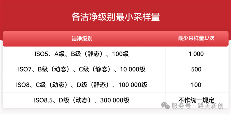 增加了不同洁净级别的最小采样量要求